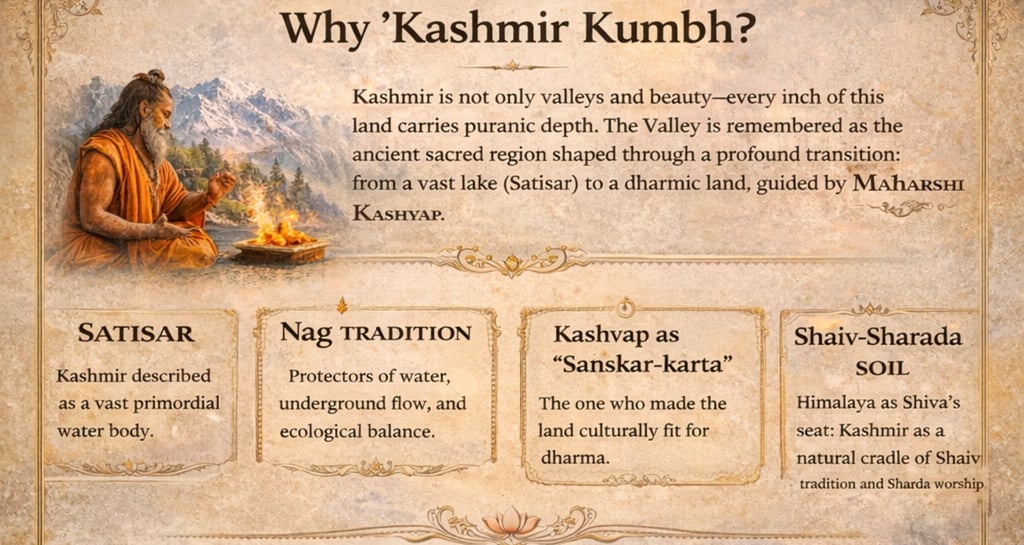 Kumbh yogic alignment, and the Kashmir Shaiv spiritual tradition—all three forming its sacred foundation.